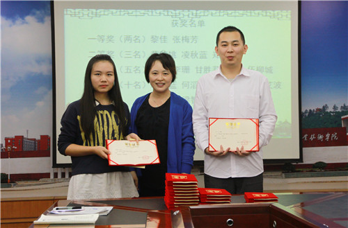 院报责任编辑宋泽锦老师对本次征文活动进行了总结;肖望兵宣读了征文大赛获奖名单。随后,与会老师为获奖选手进行了颁奖。