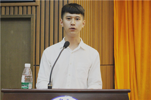 老学员代表、机械工程系数控S14-3班的朱添博同学发言。他分享了自己入党过程学到的知识、经验及感受,鼓励同学们努力学习,树立正确的目标,戒骄戒躁,严于律己,全面成才成长,努力将自身价值体现到伟大祖国的建设中去,并祝愿新学员们争取早日成为合格的共产党员。