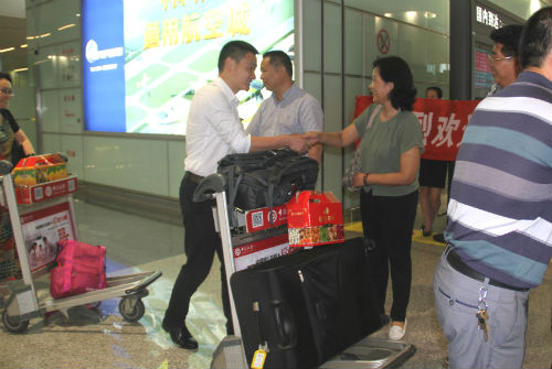 本网讯 6月28日,包括我院电气工程系陈义老师在内的我省第七批33名中期轮换援疆教师在圆满完成援疆任务后返湘。省委组织部、省发改委、省教育厅相关领导及我院党委副书记陈超等各相关院校负责人一同来到机场迎接。