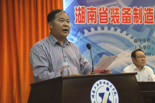 何建国在启动仪式上讲话,简要介绍了湖南制造强省建设背景,高度肯定了我院承办此次活动对工匠精神的传播与交流的重要意义。他从“呼唤工匠精神,创新人才培养模式”、“弘扬工匠文化,雕刻装备工业转型”、“培养工匠湘军,加快制造强省步伐”三个方面,呼吁全社会意识到工匠精神的可贵,多渠道加强职业教育对接产业发展,要求相关职业院校苦练内功,提高教学质量,提升学生创业就业能力,培养产业需要的大批工匠人才,壮大工匠湘军队伍,支撑产业发展,为加快制造强省步伐做出更大的贡献。