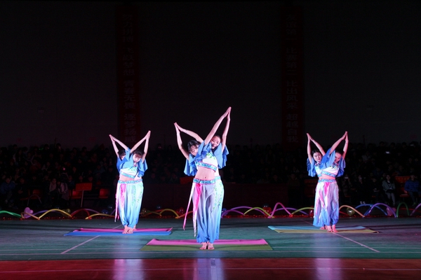 本网讯 12月29 日晚,由体育艺术部主办,院文体部、各系院文体部、学生体艺协会共同承办的2015体育艺术文化节广场舞比赛在我院训练馆举行。学院副院长邓建国,体育艺术部部长周文,学生工作处处长杨文斌,副处长彭波,院团委副书记伍俊晖,各系(院)党总支书记、老师应邀担当本次大赛的评委。活动由广播站成员鄢如钰、孙佳博主持。