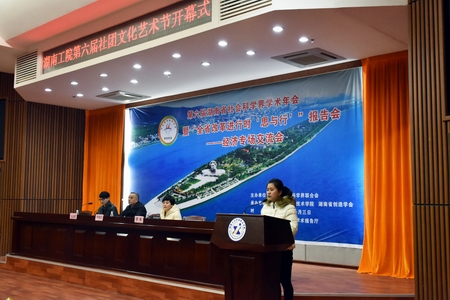 院团委书记黄敏为社团文化艺术节致开幕词,她向学生社团提出了“更好的服务学生,丰富我院校园文化生活”的期望;院社联主席李思月同学介绍了本届社团文化艺术节系列活动,并承诺,院社联将不辱使命,更好为学生社团服务;社团代表、天心阁文学社社长倪志强同学表示将积极投入到文化节系列活动中。随后,邓建国宣布本届社团文化艺术节正式开幕。