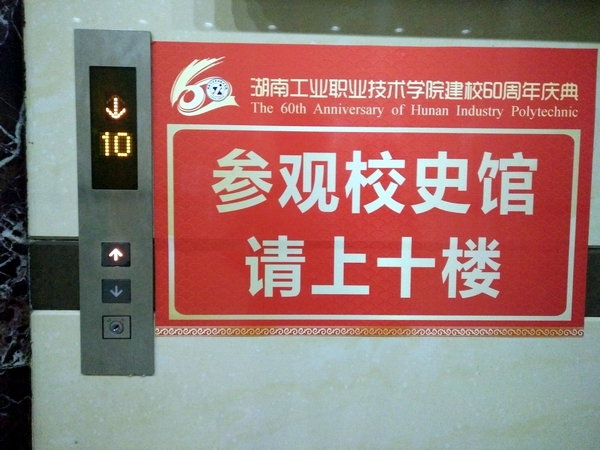 校门口“热烈庆祝学院建校60周年”的喷绘热情似火
