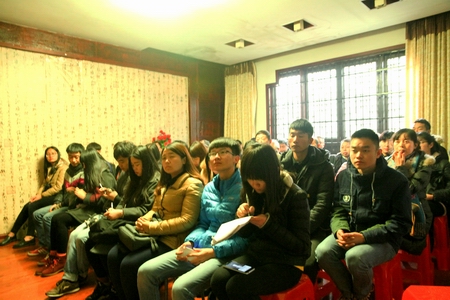 在报告会上,关山村原村长向霞光分别从关山村的基本情况、六年发展致富的经验以及未来的发展规划三个方面向在场老师和学生介绍关山村由“穷”到“富”的历程。