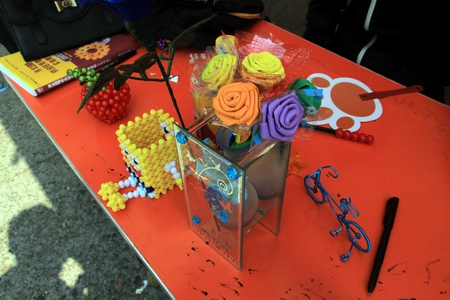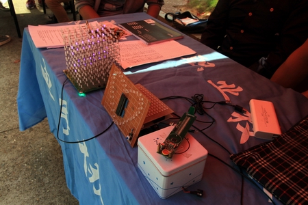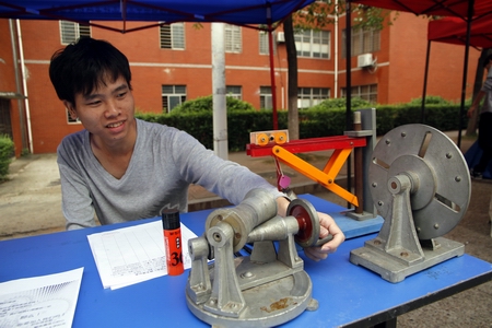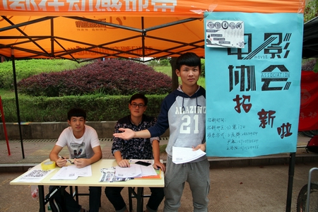 在招新的现场,为了能够吸收更多新学员,各个部门、社团都拉起了横幅、摆放展板、发放传单等等。新媒体中心的肖陆辉学长热情地给大一学弟学妹们介绍部门基本情况,还耐心为学弟学妹解惑答疑,帮助他们更好的了解部门;电子协会拿出会员自制的“爱心流水灯”等小成果吸引新生关注;营销协会军训期间就给新生送水温暖,提前宣传;机械创新协会的产品机械构建装置吸引了很多本专业学生报名。