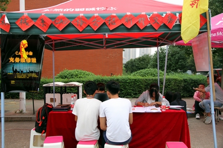 10月8日,我院学生会和院团委开始摆台招新,大学生社团联合会众多兄弟社团从13日开始也展开了一年一度的社团联合招新活动。学长学姐们共同努力,为部门注入新力量出谋划策。通过努力,前来报名的大一新生热情高涨,络绎不绝。