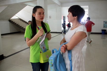 学院今年的迎新工作继承了以往的简朴风格,各项工作细节完善,为新生和家长提供人性化服务。志愿者们统一穿着绿色的服装,无论是在车站迎新点,还是校园各个角落,都能看到他们的身影。