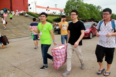 志愿者为新生提行李