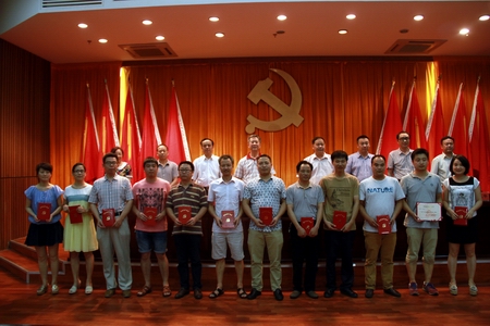学院院长刘建湘宣读《关于2015上半年发展新党员的决定》和《关于表彰2013-2015年度优秀基层党组织、优秀共产党员和优秀党务工作者的决定》:机械工程系肖泉等161名同志被吸收为中国共产党预备党员;机关一直属党支部等8个基层党组织被评为优秀,龙华等40人被评为教职工优秀共产党员,周立华等4人被评为优秀党务工作者。