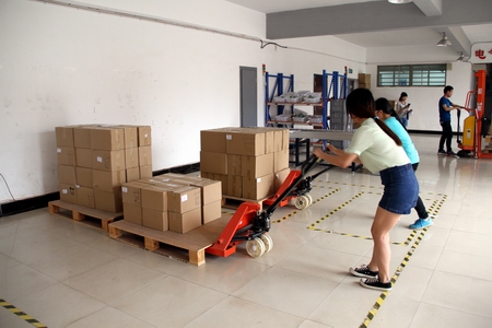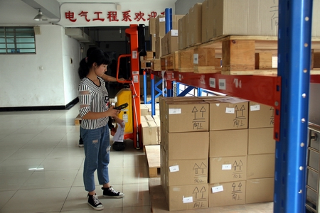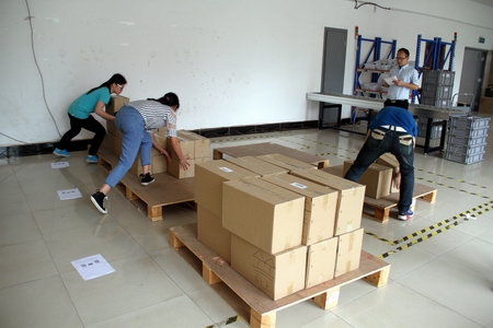 比赛有整箱货物上架、第一层入库和出库、货物清点和手持终端、电脑操作四个职能设定。选手们在赛前开展了一次模拟比赛,老师细心地指出各位选手在操作时的失误。
