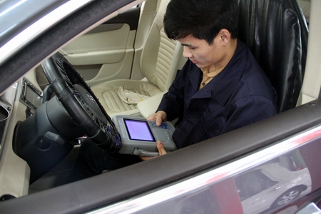 学生记者进入实训室时,参赛选手正开始模拟“汽车故障诊断与排除”的项目,选手们有条不紊地完成着赛项中的各个计分点。据悉,比赛共包括01M自动变速器拆装、速腾电气教导平台诊断和迈腾整车诊断三个项目。