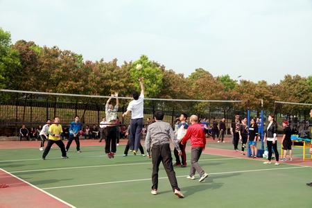 据悉,本届教职工排球比赛为六人制(女队员不少于1人)混合排球赛,分两阶段进行,先采用三局二胜制进行分组循环赛,取小组前两名;小组前两名再采用五局三胜制进行交叉淘汰。整届比赛将持续九天。
