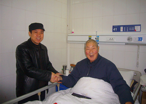 每到一处,院领导与他们亲切交谈,聊家常,话生活,问身体,希望他们一如既往地关心支持学院各项事业发展,祝愿他们新春愉快、身体健康、万事如意。看到慰问组人员的到来,80多岁的离休老干部孟昭民坚持自己从医院病床上坐起来,“退休这么多年,学院从来没有忘记我,感谢学院让我们一直葆有幸福感和归属感”。老人紧握学院领导的手,高兴地说。