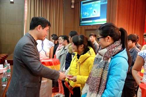 “总有一种真情触动内心最脆弱一环,总有一种感动让我泪流满面。”出身邵阳武冈农民家庭的林绍武代表受捐助学生发言。母亲体弱多病不能参加体力劳动,家庭重担全压在做小工的父亲身上,林绍武几次想退学为家里减轻负担,但又被劝了回来。在捐赠仪式上,林绍武与其他25名受助学生代表领到了每人2500元助学款,“我是一个幸运儿,今后要更努力学习,用行动回报每一位帮助过我的人。”就读机械工程系机制S14-3班的林绍武说。