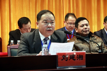 大会在国歌声中拉开序幕,刘建湘致开幕词。