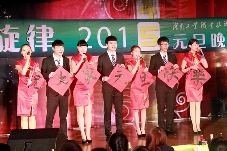 周立华为晚会致词。他代表学院党委、行政,向过去一年辛苦工作的老师和勤奋进取、取得进步的学生表示节日的问候,对我院过去一年取得的优异成绩表示肯定与鼓励,并期望广大师生携手共创“工院梦”新辉煌。