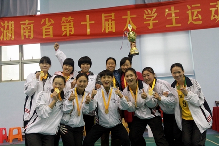 本网讯 11月18日上午,全省大学生运动会高职组女子排球比赛最后一场比赛在湖南工程职院体育馆举行,我院女排姑娘一鼓作气,直下三局轻取对手邵阳医专,创下全部比赛不失一局夺取冠军的好成绩。其中队员易欣、蔡舟被评为优秀运动员。