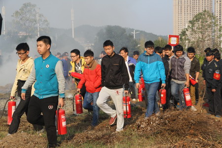 学院党委副书记周立华、学生处、各系总书记支书记、辅导员等带领学生到现场与学生和教职员工学习扑救火灾知识,掌握灭火基本技能,收到了良好效果。 (文/图 金帛)