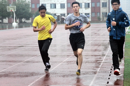 青春为冠,梦想为衣。他们在雨中踏着铿锵的步伐,跑出属于自己的青春活力。顽强拼搏是他们永恒的信念,争夺第一是他们不变的追求。或许已分不清他们脸上流淌的是雨水还是汗水,我们看到的是他们风雨中勇往直前的奔跑。