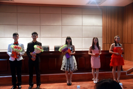 经过激烈角逐,孙佳博同学摘得本次大赛的“金话筒”,李佳明荣获“银话筒”,鄢茹钰获得“铜话筒”,申容畅和张鹤璇分别获得最佳风采奖和最佳口才奖。