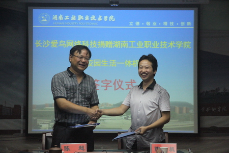本网讯 8月4日上午,长沙爱鸟网络科技有限公司捐赠电子pg游戏平台下载设备签字仪式在我院办公楼第二会议室隆重举行。爱鸟网络科技有限公司经理陈帆,学院副院长陈超,党政办、对外合作交流处、学生处、招生就业处、资产管理处、监察审计处、信息化建设与管理中心等职能部门负责人出席了本次签字仪式,仪式由学院信息化建设与管理中心副主任李健主持。