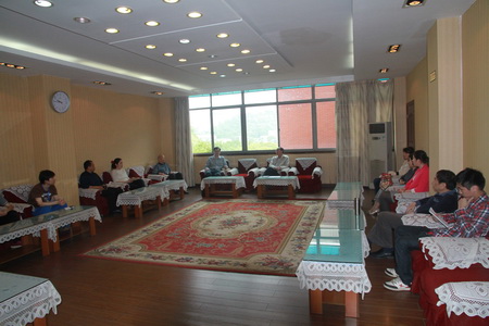汇报会结束后,督查组召开了教师、学生代表座谈会,查阅了相关资料。中午,督查组全体成员在学生食堂与学生一起用餐。下午,督查组一行在周立华陪同下实地察看了我院校史馆、大学生活动中心、心理咨询室和学生宿舍内的学生党团活动室等,并与师生进行了个别访谈。