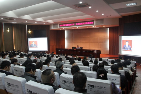 4月8日下午,学院党委书记熊琦在图书馆报告厅给全院党员干部上了一堂题为《领会反腐倡廉精神实质筑牢拒腐防变思想防线》深刻而又生动的廉政党课。学院纪委书记李玲主持,院领导班子成员、中层干部、师生党员代表300余人到场聆听。