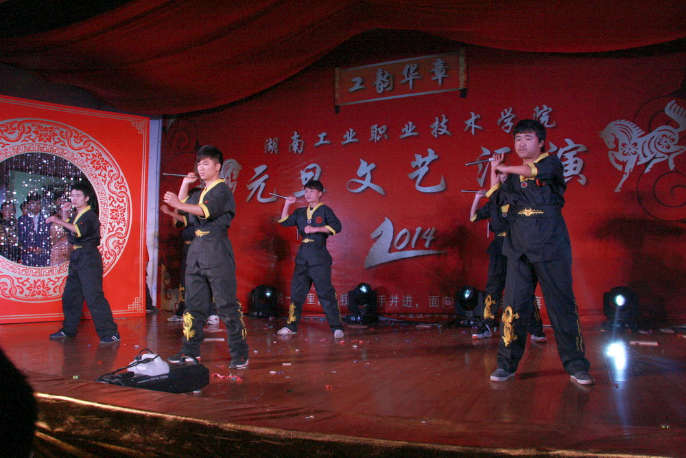 晚会分为温暖前行、瑞雪丰年、福马迎春三章。在精彩的现场节目之余,各系学生代表也送上了新年祝福,祝福学院越来越好,师生健康快乐。整场晚会展示了我院师生才华,彰显了师生积极向上的良好精神风貌。过去的一年,我们同心同德,开创佳绩。我们挥洒汗水,放飞希望。新的一年,愿我们昂首阔步,点燃激情。愿我们温馨和谐,收获喜悦。祝福湖南工业职院2014年马到功成!