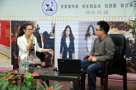10月28日下午,正值都市励志喜剧片《爱拼北京》全国上映之际,我院校友、《爱拼北京》编剧、也是该同名小说的作者文霞来到母校接受访谈,深情讲述她艰辛与成功的心路历程,并在访谈前后进行了新书《爱拼北京》签名义售活动。活动由学院党委宣传部、招生就业处、院团委联合主办。