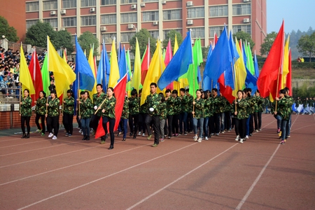 伴随着激昂奋进的运动员进行曲,国旗礼仪队方阵、标语牌方阵、彩旗方阵、院徽方阵、裁判员方阵、高水平运动队方阵及各系(院)代表队方阵、各分工会教职工方阵依次入场。他们步伐矫健、口号嘹亮、动作整齐,展现着学院师生的蓬勃朝气和昂扬斗志。统一的服装、精心设计的方阵表演呈现出一场视听盛宴,赢得了现场观众热烈的欢呼和掌声。