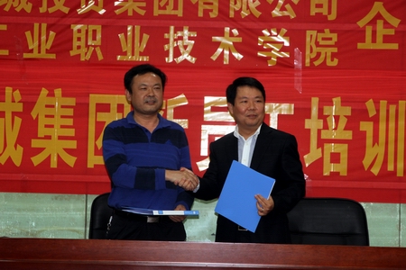 10月9日下午,我院与湖南九城投资集团有限公司举行的企校合作签约仪式在办公楼一会议室举行。九城投资集团总裁卢新涛、常务副总裁袁超、我院党委副书记周立华、对外合作办公室主任彭跃湘,机械工程系、汽车工程学院、电气工程系相关负责人及就业专干出席了签约仪式。仪式由彭跃湘主持。