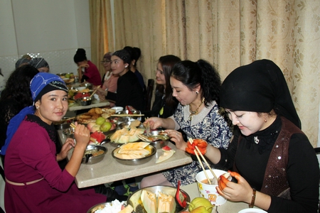 外校新疆班学生、维族姑娘阿莎米提来到我院与朋友们共庆节日,从进入学院后看到的节日问候的标语,到清真食堂浓郁的节日欢庆氛围,这都让她感到非常亲切。她表示,“在这里找到了家庭成员相聚在一起共度节日的温馨感觉”。