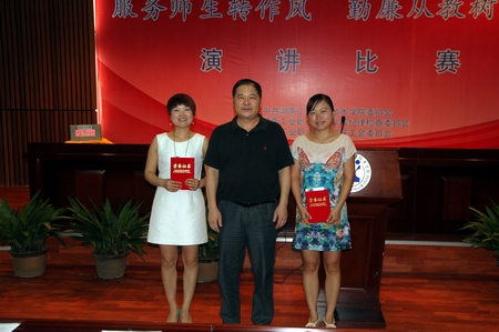 6月27日下午,由院党委、院纪委、院工会共同主办的“服务师生转作风,勤廉从教树形象”演讲比赛决赛在图书馆报告厅隆重举行。党委书记龙承海、院长刘建湘等全体院领导及各党总支师生前来观摩比赛。比赛全程由商贸旅游系沈飞跃老师、经济管理系李可丁老师主持,评委团由来自各党总支的相关工作人员组成。