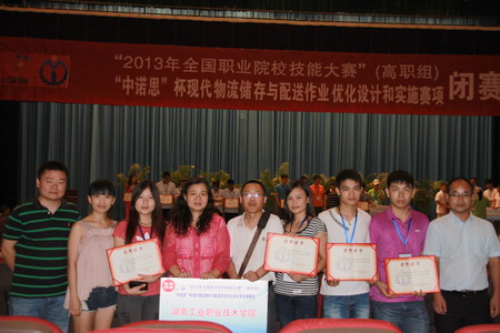 获得二等奖的“现代物流储存与配送作业优化设计和实施”赛项代表队合影