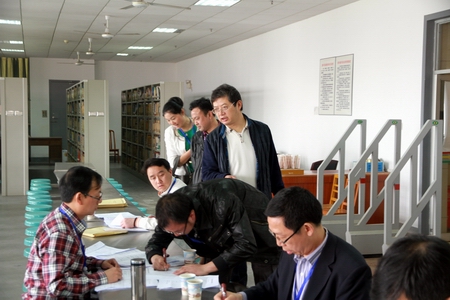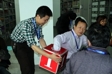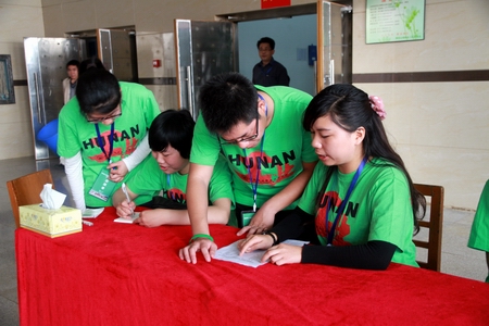 学生志愿者检查、核对参赛辅导员的考务信息