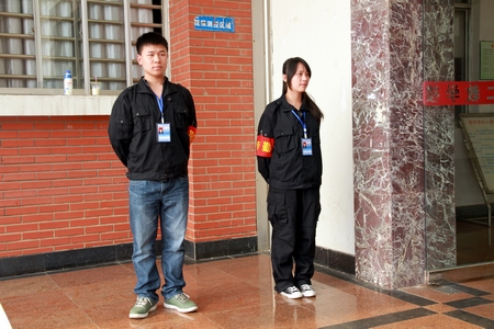 认真执勤的保卫部学生干事