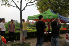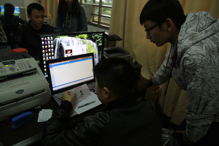 4月18日,工作人员调试报名系统、提前搭好专业咨询台