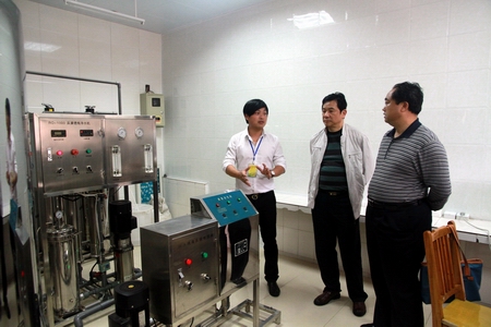 钟晓林陪同来访客人实地考察了学生公寓热水和校园直饮水系统。