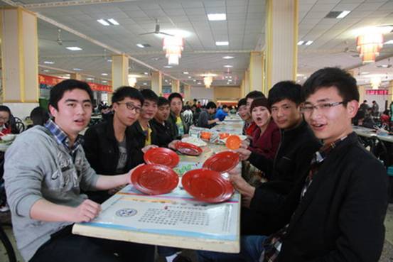 中午12点,贺梅春和学生在食堂就餐,向记者展示他们的光盘行动。