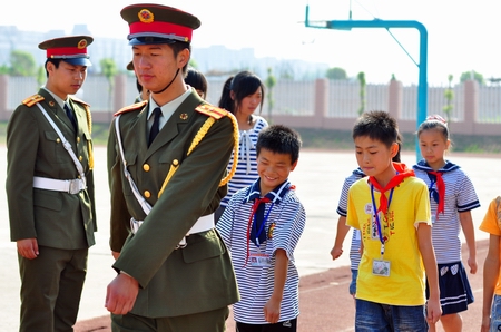 联丰小学的学生们看到我院的国旗礼仪手们都感到很新鲜和好奇,“很喜欢看到大哥哥们穿着军装,非常帅气,将来我也要像他们一样。”一位小同学很认真地说道。该校的领导与老师们对礼仪队的到来也表示了热烈欢迎。