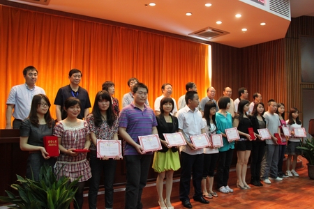 学院党委书记廖洪元教授、党委副书记龙承海教授分别宣读了省级优秀毕业生表彰决定和院级优秀毕业生表彰决定。我院尹业刚、沈涛等75名同学获得省级优秀毕业生,赵映升、周彩艳等190名同学获得院级优秀毕业生。院领导现场为获奖毕业生代表颁发了荣誉证书并合影。
