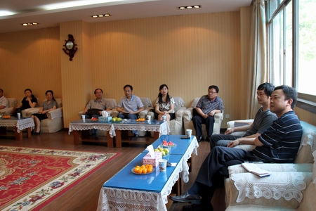 会上,周立华简要介绍了我院发展历程、国家示范院校申报和建设情况、招生就业形势以及发展经验等。随后,双方就国家示范性高职院校创建工作、财务管理、监察审计、办公室规范化建设等方面进行了深入探讨。湖南工艺美术职业学院副院长汪泳波对我院的热情接待和深入交流表示感谢。
