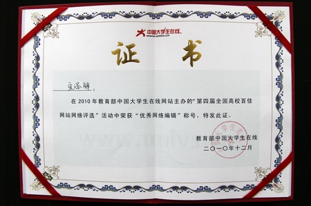 网站指导老师宋泽锦获得“第四届全国高校百佳网站优秀网络编辑”称号