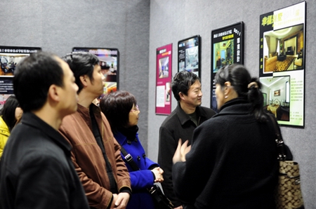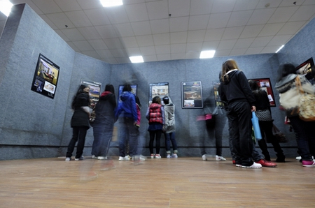 对此次作品展期待已久的同学们欣赏着毕业班的设计,很多同学还不时拿起相机、手机拍下他们赞赏的作品,并相互交流各自对作品的理解角度和观点。