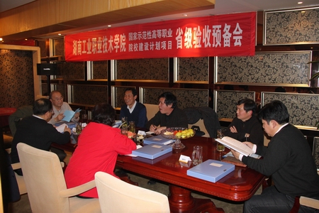 1月24日,受湖南省教育厅、财政厅的委托,以中国高教学会产学合作教育委员会会长、原教育部高教司副司长朱传礼为组长,马树超、孙长庆、刘小芹、周明星、张大伟、刘洪宇等七位专家组成的专家组对我院国家示范性高等职业院校建设项目进行省级验收审核。会议由省教育厅职成处副处长朱日红主持,省教育厅、省机械行管办、省财政厅、省发改委等相关部门领导参加了会议。专家组通过听取汇报、召开座谈会、现场考察、查阅资料等形式,对我院国家示范校建设进行验收评审。经过专家组的严格考评,我院顺利通过国家示范性高职院校建设项目湖南省省级验收。