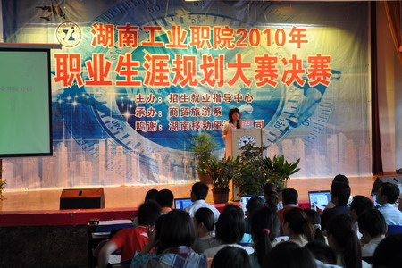 为使广大学生更加明确做好职业生涯规划的重要意义,确定积极的人生目标,努力锻炼自我、发现自我、挖掘自我,在未来的职业生涯中争取走出一条属于自己的道路。6月22日下午,2010年大学生职业生涯规划大赛决赛在大学生活动中心举行。本次大赛由学院招生就业处主办,商贸旅游系承办。比赛邀请到省教育厅大中专学校学生信息咨询与就业指导中心事业发展部王彬副部长、金蝶软件(中国)有限公司长沙分公司谢锋副总经理等担当比赛评委。招生就业处、学生处等相关处系负责人及各系党总支书记出席比赛现场。