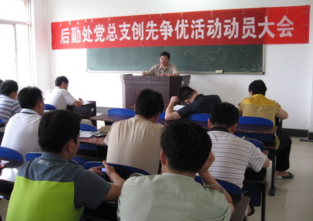 7月6日下午,后勤党总支召开“后勤党总支创先争优活动动员大会”,学院党委委员、副院长钟晓林出席会议,后勤处全体党员参加了会议。会议由后勤党总支书记苗治田主持。