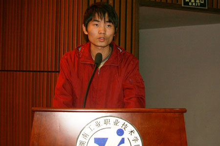 学生代表、汽车S08-1班的刘涛同学发言,表示在日后的学习中将大胆创新,发奋拼搏,力争成为一名适应社会主义经济建设的高素质技能人才。