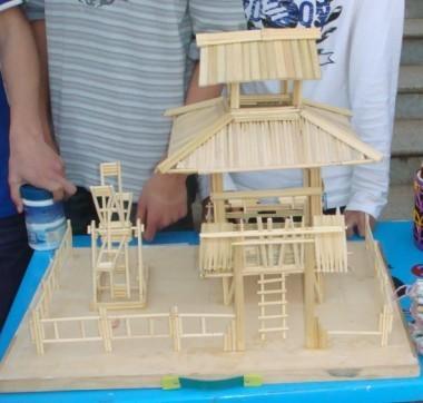 同学们带来了用筷子和扣子制作的精美艺术品进行义卖,支持环保,从我做起