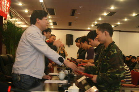随后,本次赛点副主任董建国教授宣读了竞赛获奖名单,我院学生孙先林、史俊、李硕、陈果、汪超、谢勇林等六位选手囊括了高职组零部件3D测量与制造一等奖。在座主席台领导嘉宾为获奖选手颁奖并合影留念。